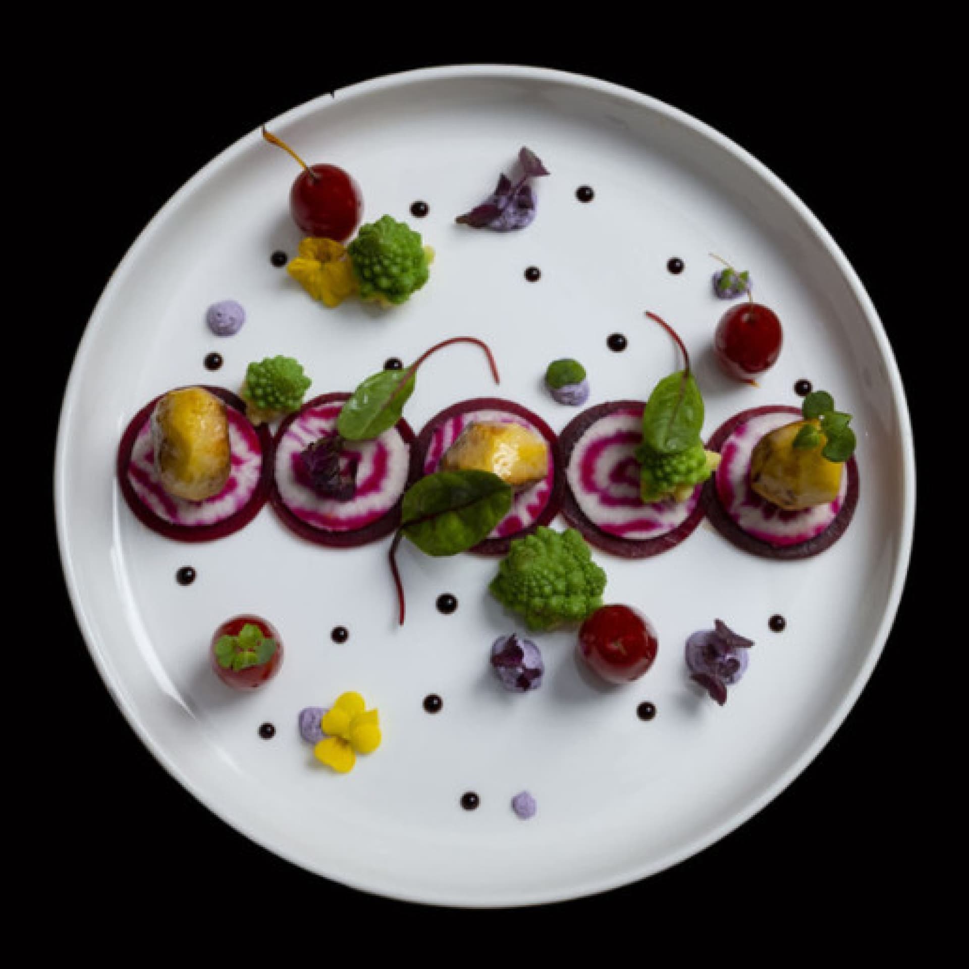 Une fois terminé, Michael nous a reconduits vers la lumière. Mes yeux ont mis quelques instants à s’adapter et nous avons été invités à nous rasseoir dans la salle d’attente, où nous a été dévoilé le menu dégusté. Le talent créatif du chef Radili y était évident : composer des plats sans produits laitiers, sans œufs et sans 14 allergènes différents, relève de la prouesse. « Il faut travailler la texture, l’odeur et le goût », nous a-t-il expliqué. « On pense connaître la saveur de quelque chose, mais parfois, ça goûte complètement différemment. »